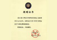 2004年10月,公司捐資壹萬元人民幣,支持北京大學2008年奧運會乒乓球比賽場館建設。