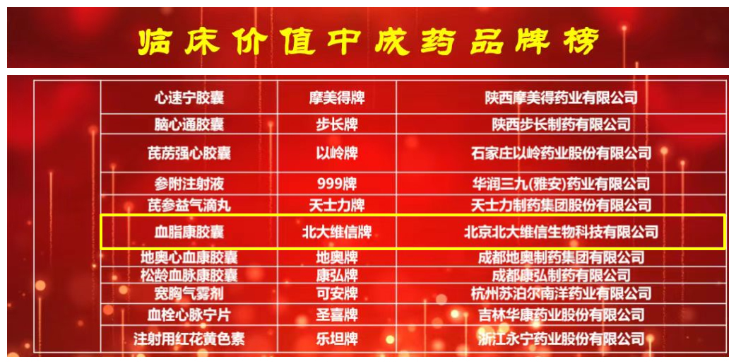2021年12月18日,中國中藥協(xié)會在京發(fā)布“2021中國中藥品牌”。“北大維信”品牌入選“2021臨床價值中成藥品牌榜”。此次入圍中成藥品種共138個,涵蓋心血管、腦病、內(nèi)分泌等20個優(yōu)勢疾病領(lǐng)域。